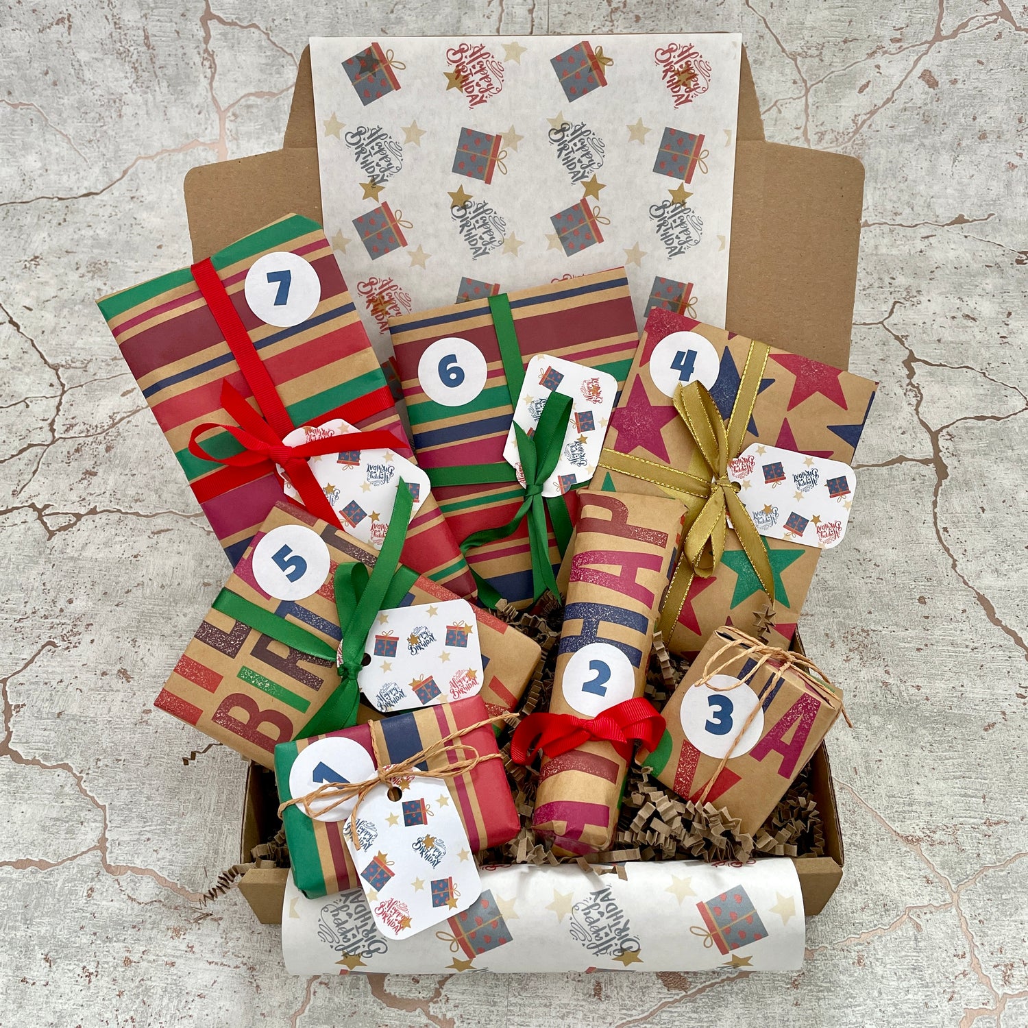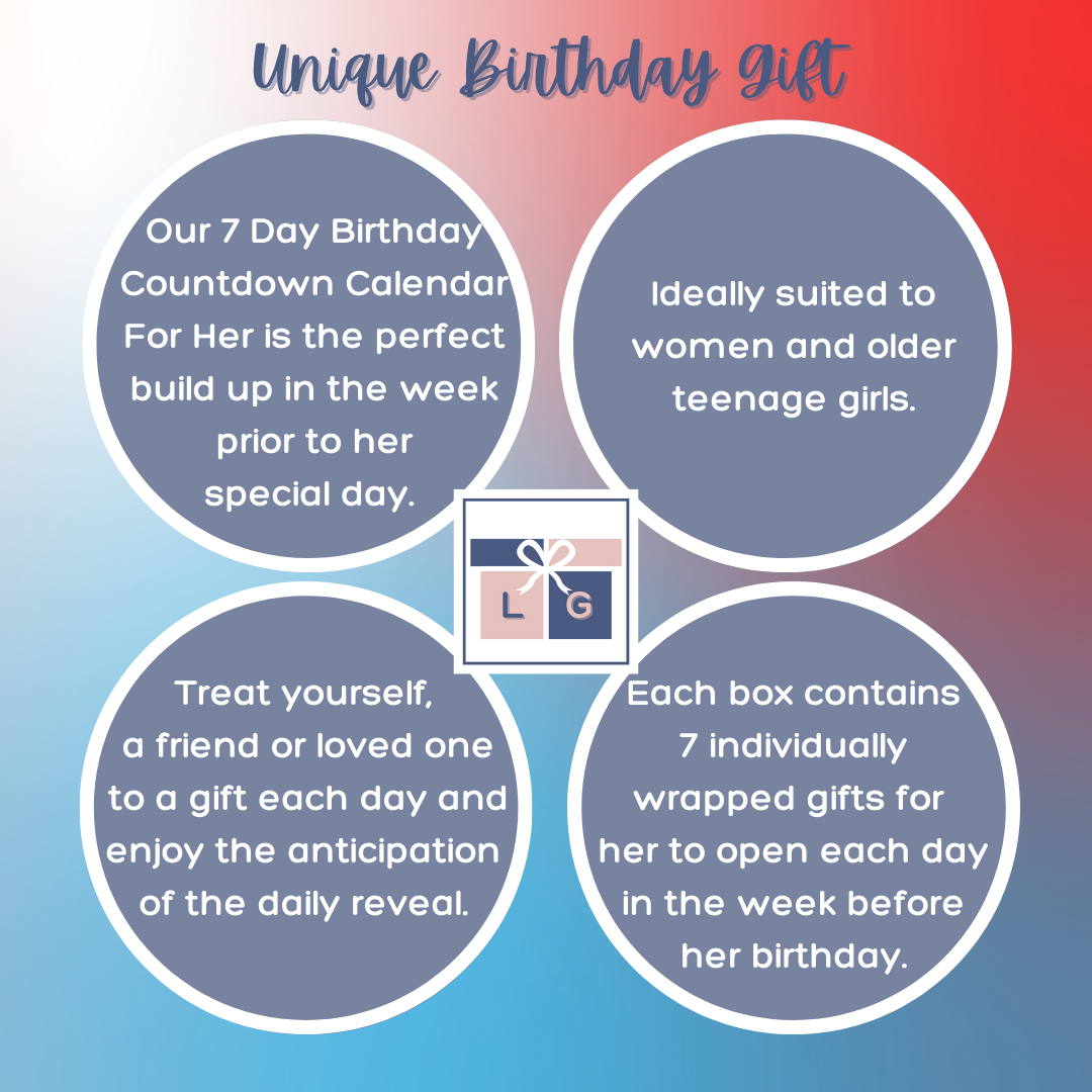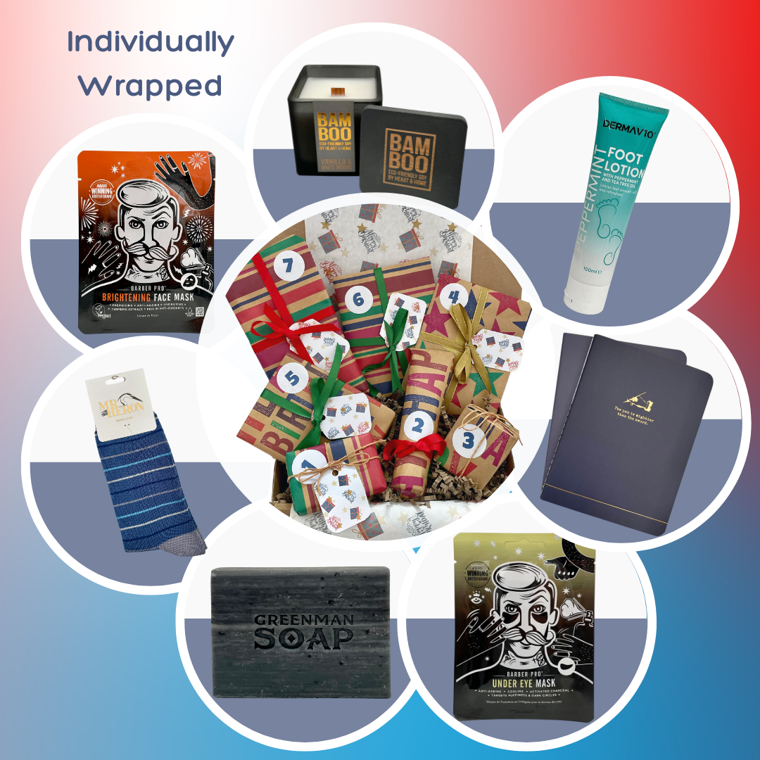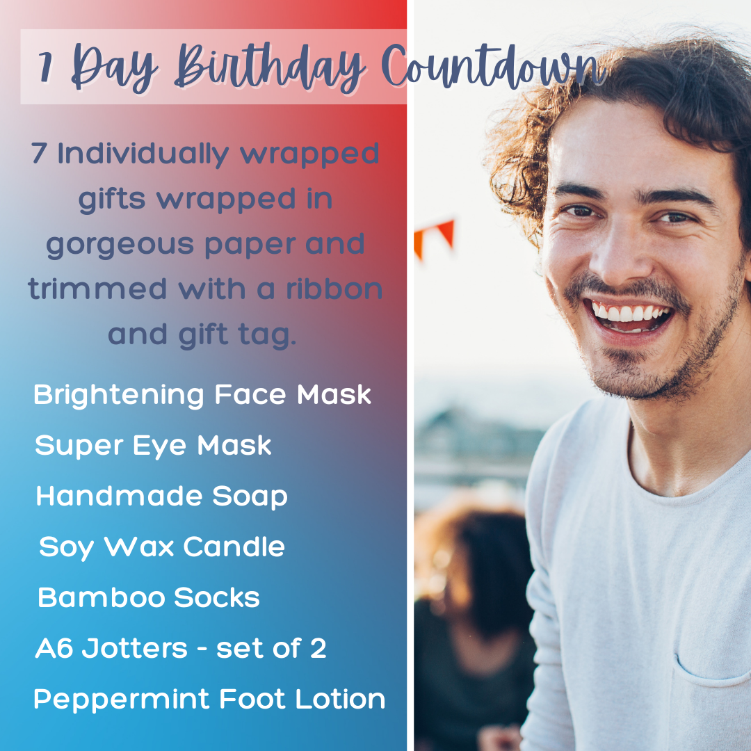 Our 7 Day Birthday Countdown Advent Calendar For Him is the perfect build up in the week prior to his big day, with some of our favourite pamper treats, accessories, and stationery to be enjoyed. Each box contains 7 individually wrapped gifts for him to open each day in the week before his birthday. Treat yourself, a friend or loved one to a gift each day and enjoy the anticipation of the daily reveal. Ideally suited to men and older teenage boys.