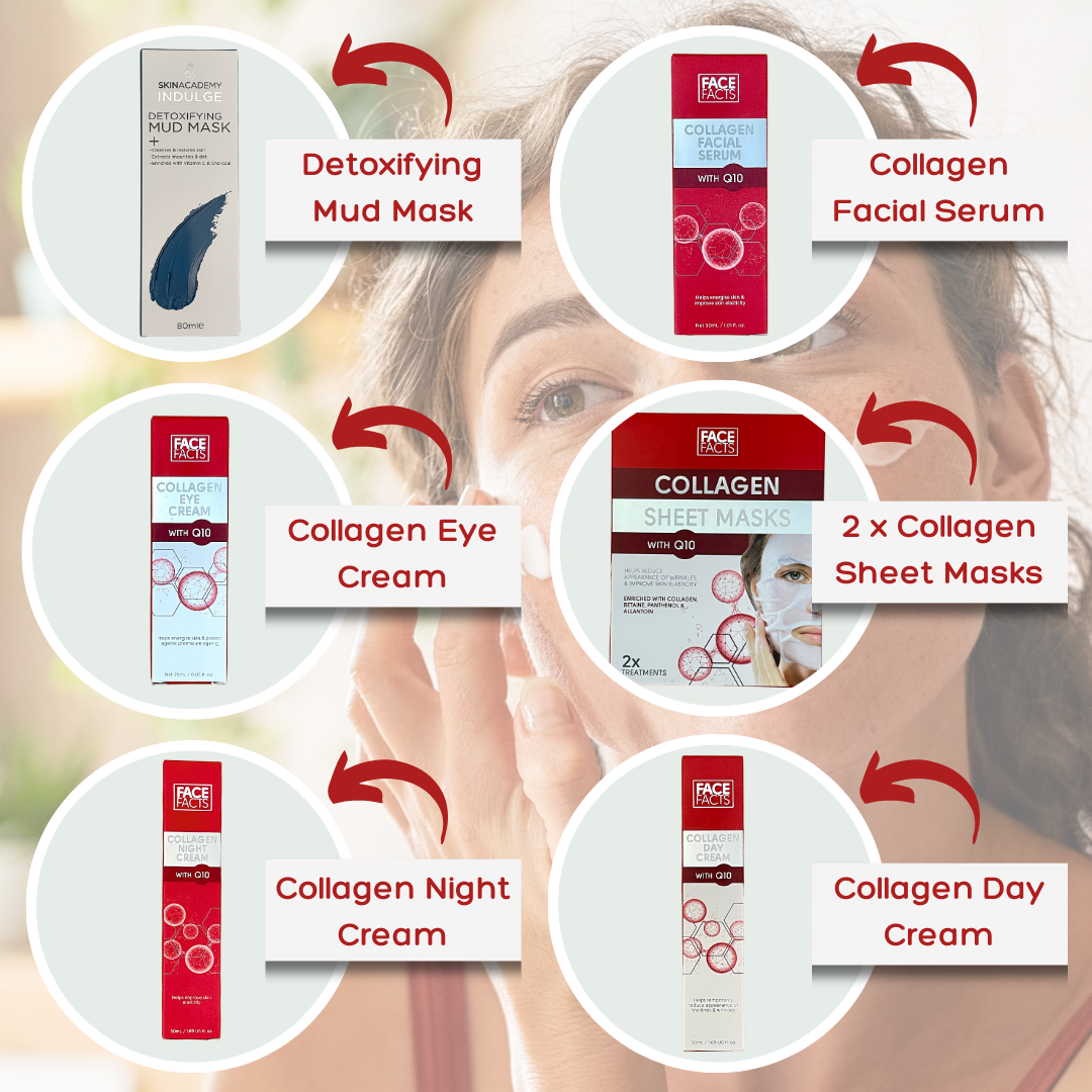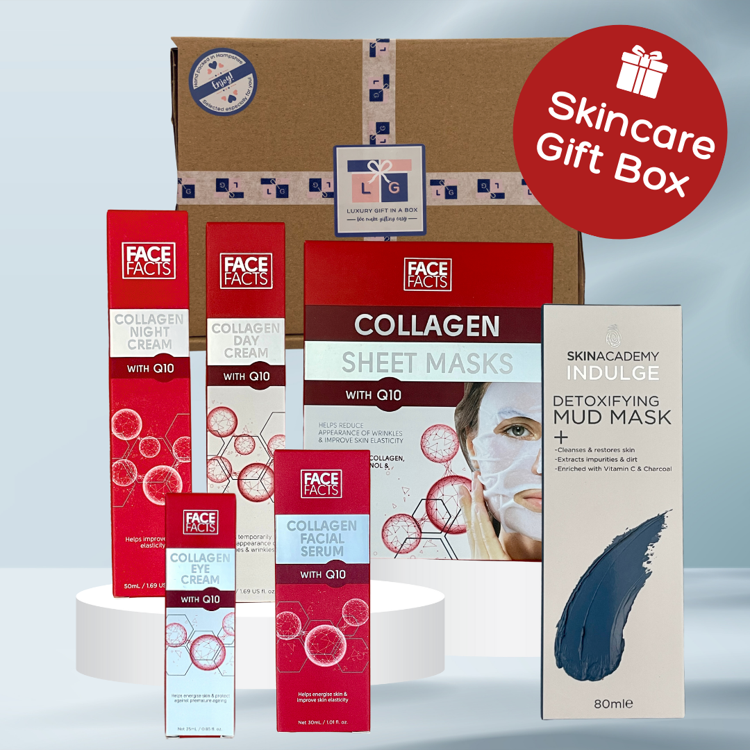Our Collagen Pampered Skin Box is filled with high quality yet affordable skin care products and treatments enriched with Collagen and Q10 to help energise the skin and improve elasticity. Hand packed in a recyclable box, on a bed of shredded paper and ready for gifting and delivered direct to your loved one.