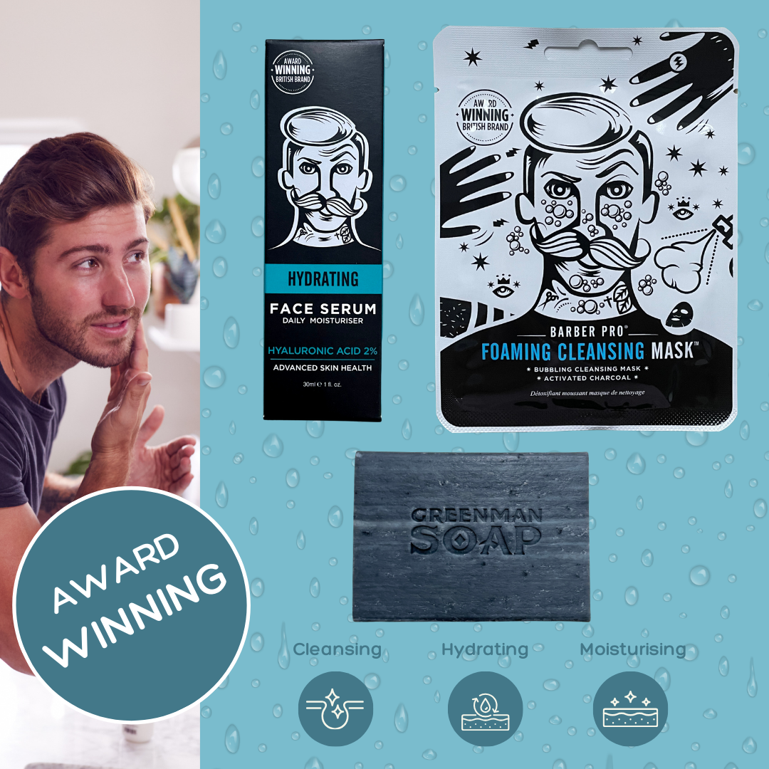 Whether you're shopping for yourself or seeking an ideal gift for a skincare-savvy man, our Men's Hydrating Face Serum, Foaming Cleansing Mask, and British Artisanal Soap set is the perfect choice. Treat yourself or surprise someone special who values the importance of a well-rounded skincare routine.