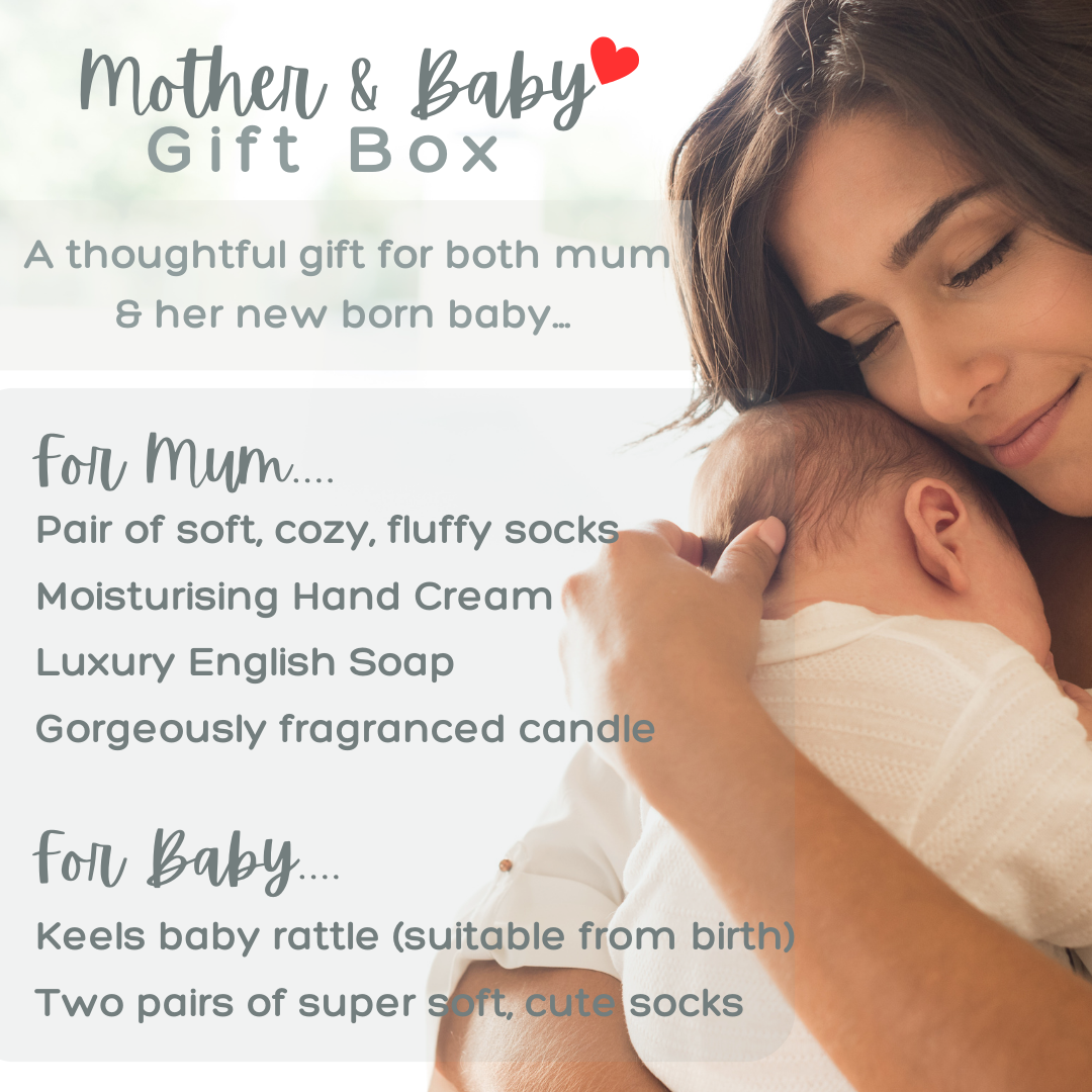 Mother & Baby Gift Box makes the perfect gift for new born baby and mother. Beautifully hand packed in a recyclable box, with a ribbon all ready for gifting. You can add an optional personalised gift message and 2-3 day UK delivery is FREE.