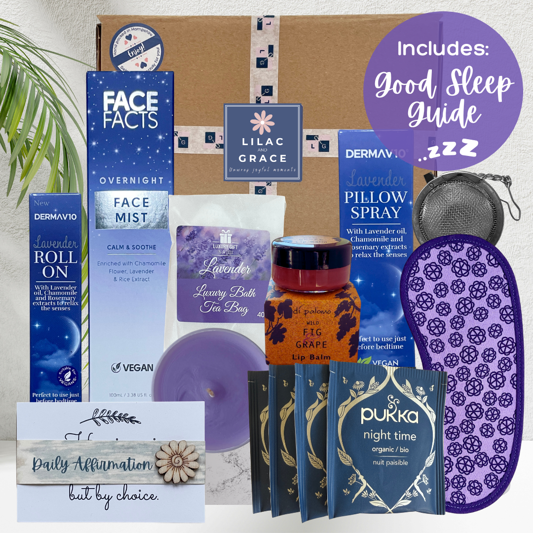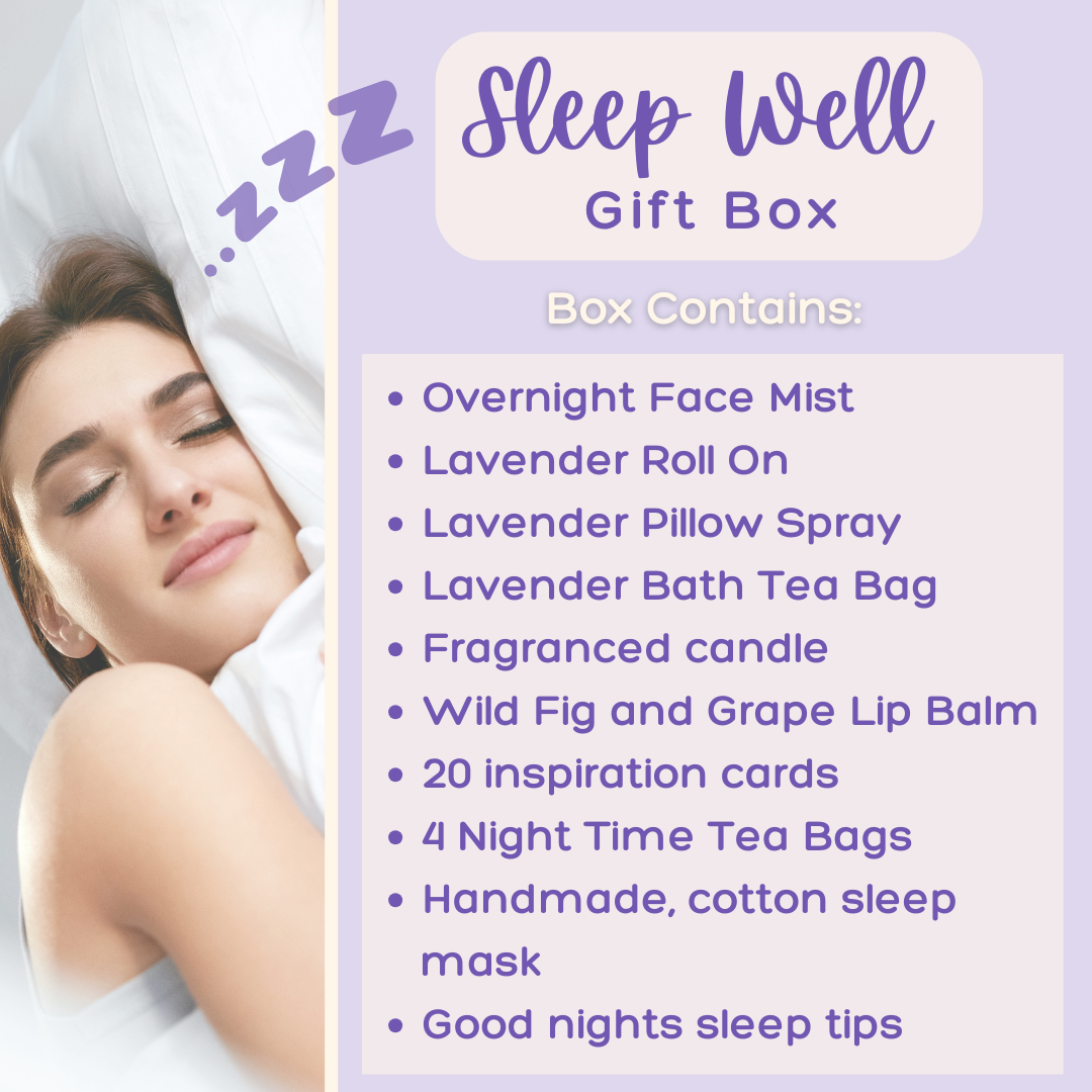 Sleep Well Relaxation Box with everything you’ll need to help you enjoy a restorative and restful nights’ sleep. An ideal gift for someone who needs a little extra help to relax and de-stress and get a really good nights’ rest. Hand packed in a recyclable box on a bed of shredded paper and finished with a ribbon all ready for gifting.