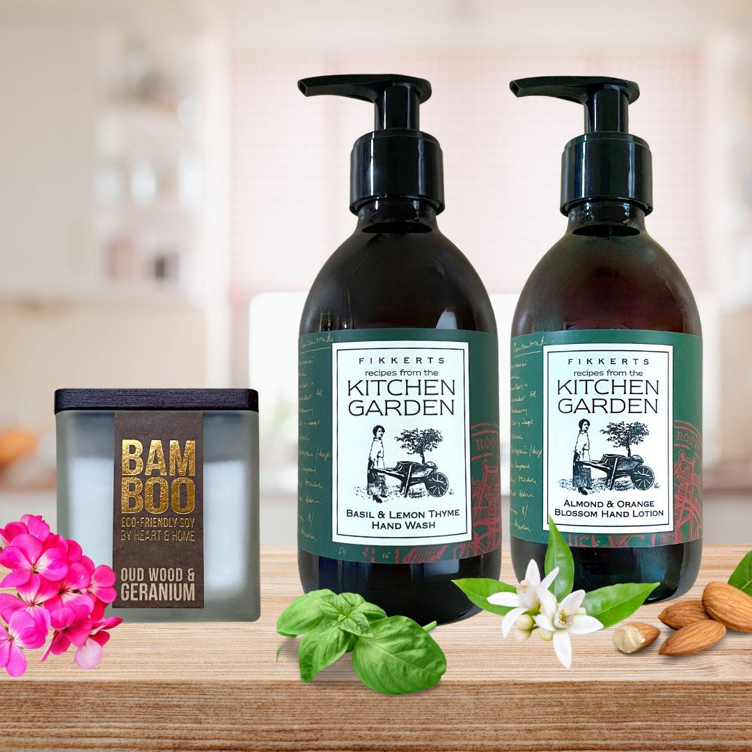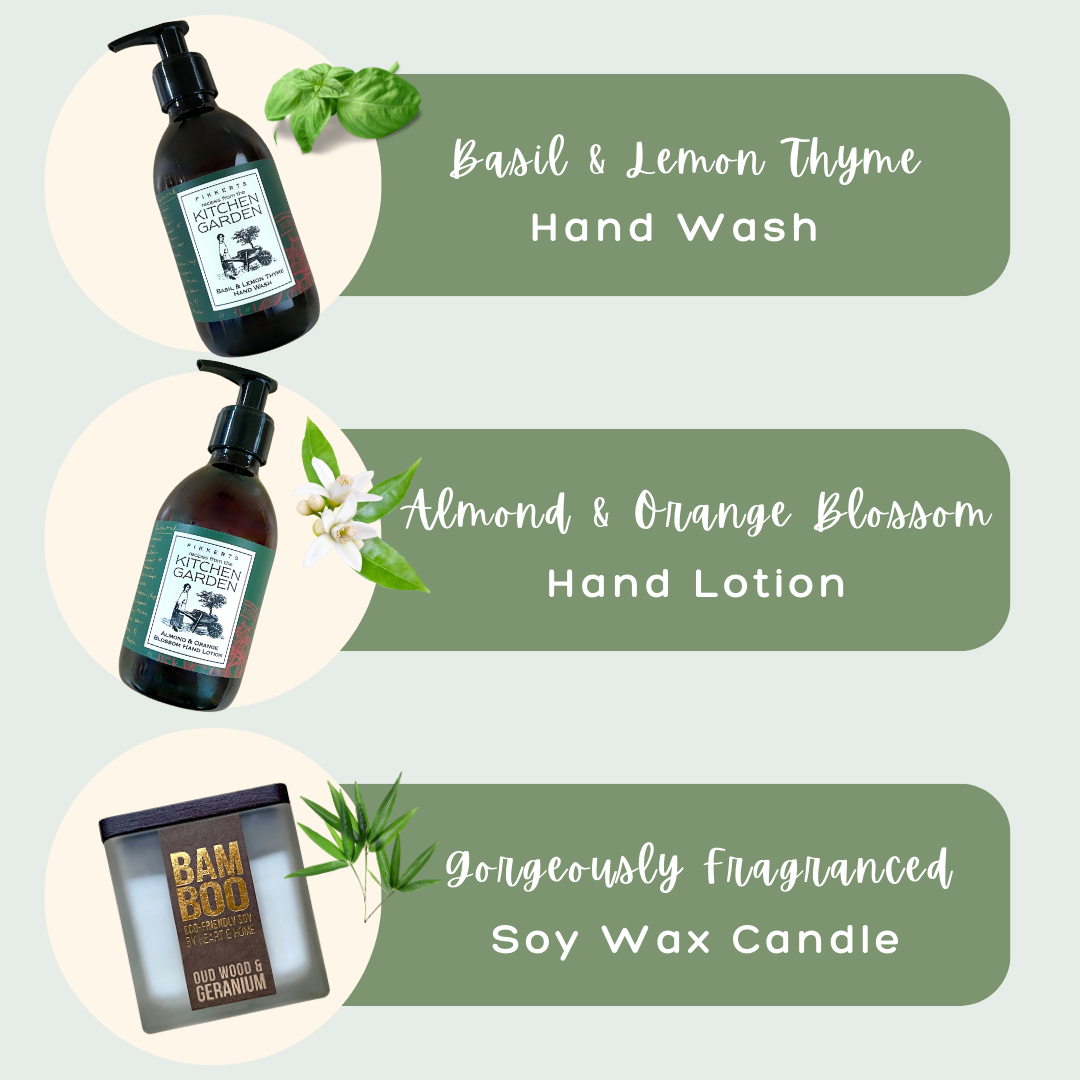 A lovely gift set to cleanse and nourish a keen gardeners hard working hands, with a gorgeously fragranced soy wax candle.  Hand packed in a recyclable box, on a bed of shredded paper and ready for gifting. A personal gift message can be added and there is a gift wrap option available.