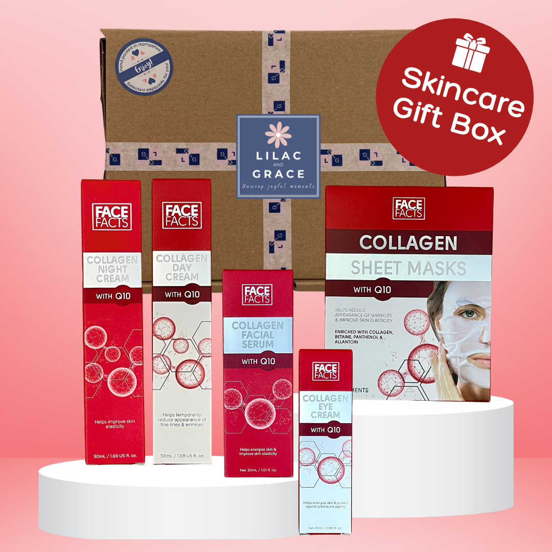 Enjoy a women's skincare pamper box inspired by high-end skin care at home with our brand new Collagen with Q10 Face Treatment Collection. This collection of luxurious spa products includes a face cream, face mask, and eye serum to help fight against fine lines and wrinkles while reducing puffiness. Our moisturizing face serum is an intensive wrinkle reducer that will leave your skin feeling amazing. Each item was carefully selected to provide the most effective blend of ingredients in minimum time. Simply apply each product to clean skin daily before bedtime to dramatically improve the look and feel of your skin.